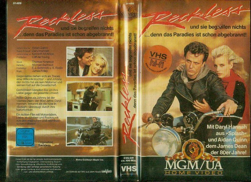Streaming Bellesa Daryl Hannah - Reckless - Reckless Jung Und Rucksichtslos Drama Videokassetten Aller Genres Ohne Indizierte Film Retro Shop De
